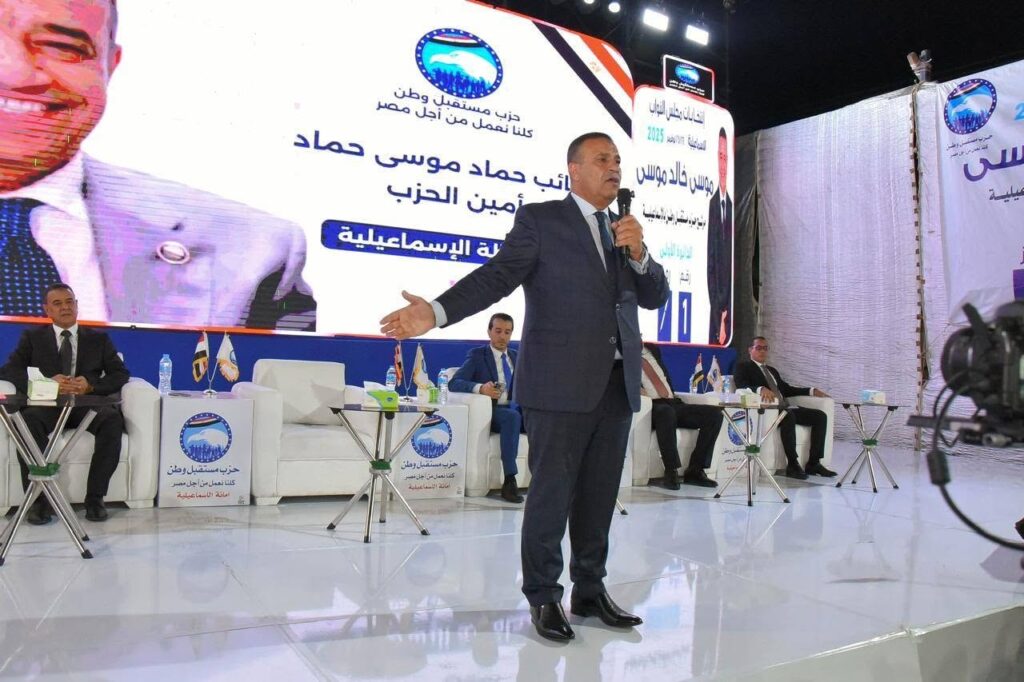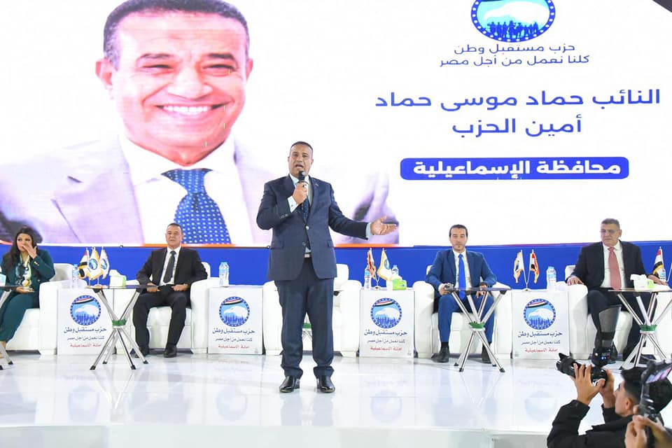 شهدت مدينة الإسماعيلية مؤتمرًا جماهيريًا حاشدًا نظمته أمانة حزب مستقبل وطن ، وذلك لدعم مرشحي الحزب في الإنتخابات القادمة؛ وذلك بحضور النائب حماد موسي حماد أمين حزب مستقبل وطن الإسماعيلية ، وعضو مجلس الشيوخ ، الأستاذ وائل عبدالعزيز ، أمين التنظيم ،الأستاذ موسي خالد، مرشح الحزب عن المقعد الفردي بالدائرة الأولى، النائب سامي سليم ،مرشح الحزب عن المقعد الفردي بالدائرة الثالثة ، الأستاذ سيد عبدالجليل ، مرشح الحزب عن المقعد الفردي بالدائرة الثالثة ،والأستاذة ماري جمال، مرشحة حزب مستقبل وطن ضمن القائمة الوطنية “من أجل مصر” .