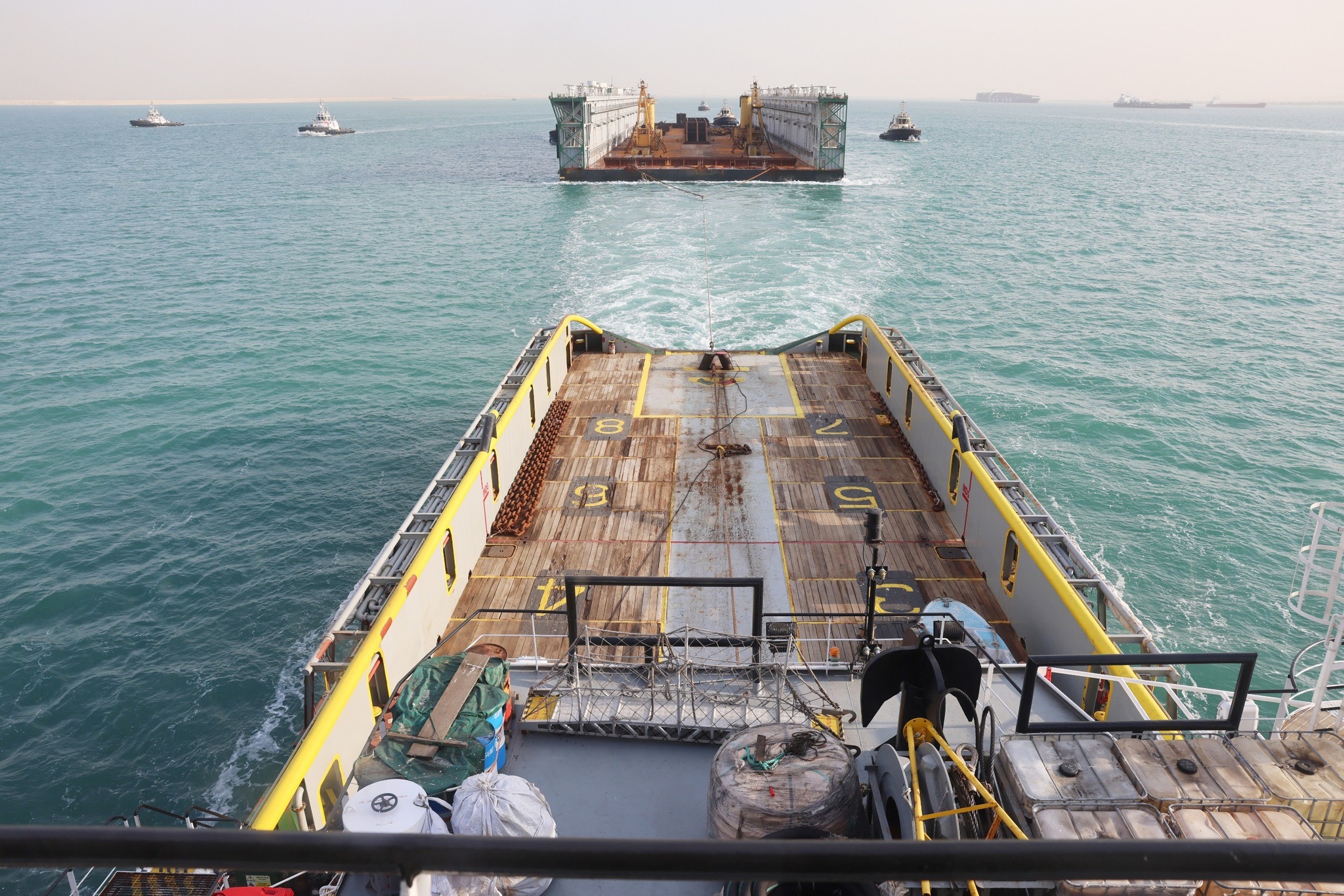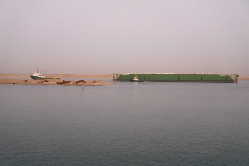عملية عبور الحوض العائم مقطوراً عبر القناة استغرقت 24 ساعة وتطلبت اتخاذ تدابير ملاحية خاصة