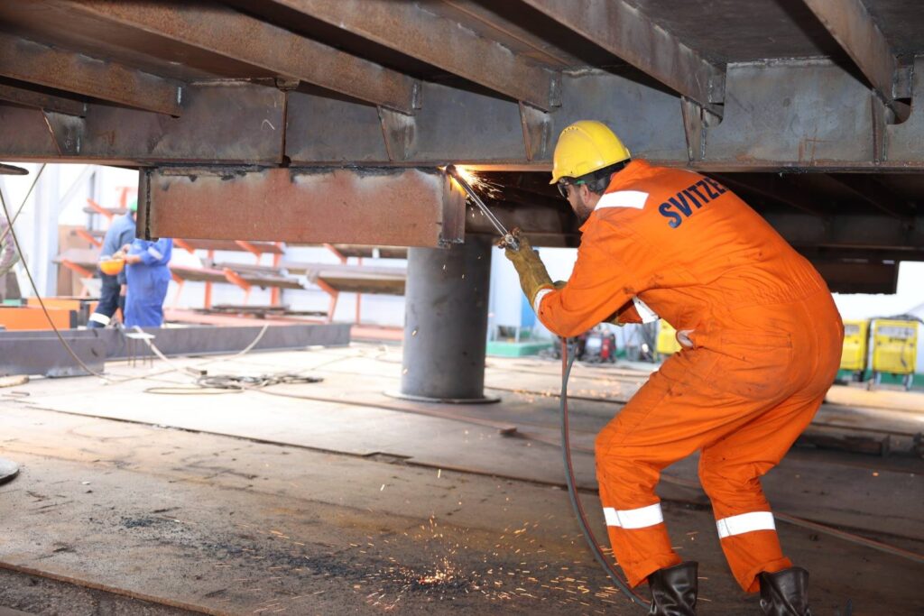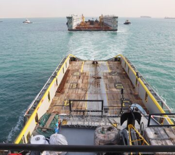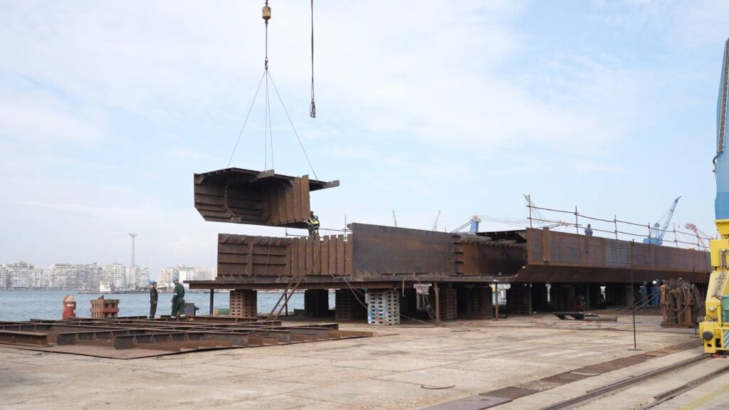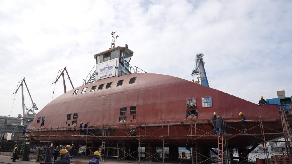 ثم تعرف رئيس الهيئة على مستجدات أعمال بناء قاطرة بقوة شد 20 طن لتلبية احتياجات الترسانة بنسبة إنجاز بلغت 30٪ بساحة الترسانة، بالإضافة إلى متابعة أعمال بناء معديتين ركاب حمولة 320 طن للمعدية الواحدة بنسبة إنجاز قدرها 40% وذلك لخدمة حركة عبور المركبات والأفراد بين بورسعيد وبورفؤاد.
