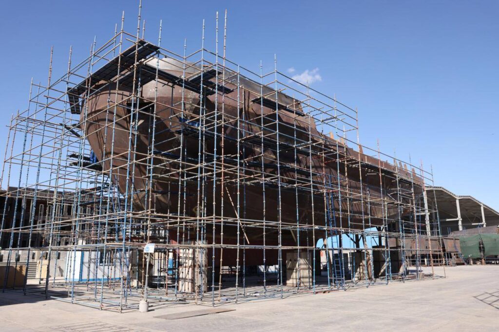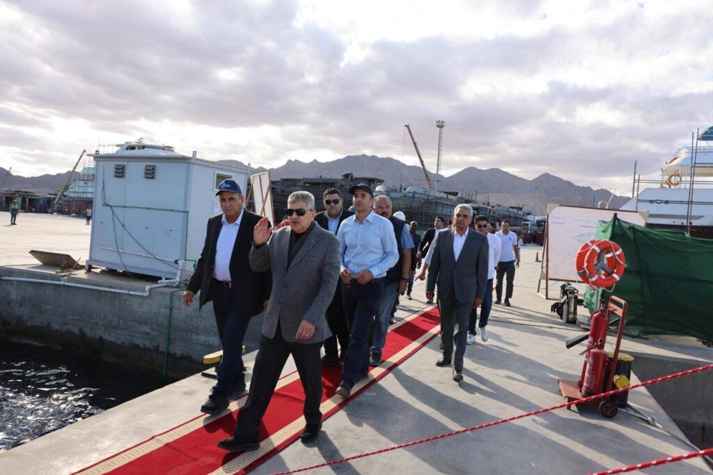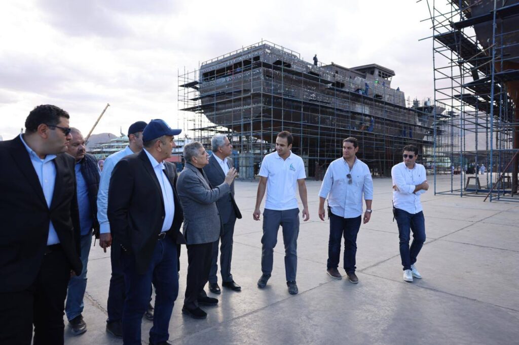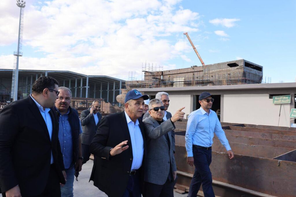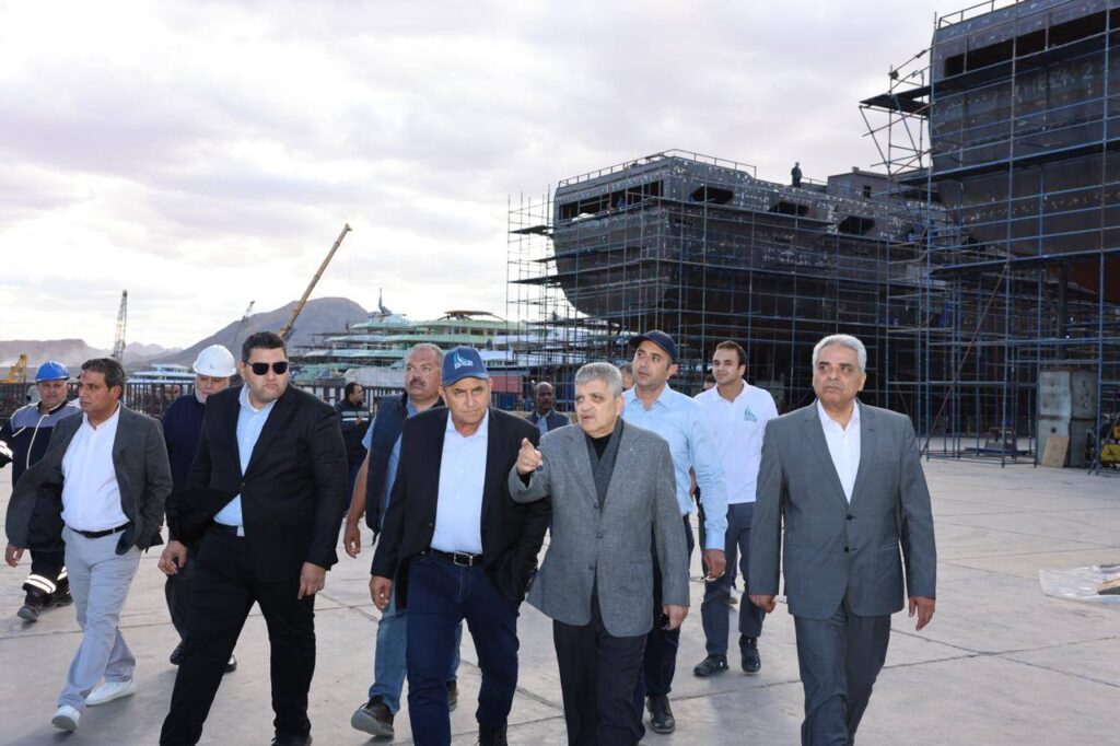 بدأت الجولة بتفقد أعمال بناء القاطرات البحرية من طراز” عزم” بساحة الترسانة، حيث يجري العمل حالياً لاستكمال أعمال بناء 8 قاطرات يتم بناؤهم على التوازي وذلك بعد تسليم القاطرتين “عزم 1″ و”عزم 2” .